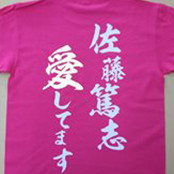 おご予算・ご要望にあわせて、あなただけのファングッズを制作いたします。 コンサートグッズ(缶バッジ・うちわ・タオル・Tシャツ・カッティングシート・ハッピ)、アイドルやバンドの応援に行く際のコスチュームも制作可能! もちろん物販用のTシャツやタオルなども制作しているので興行側様のご依頼もお待ちしております。